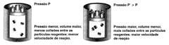 O aumento da pressão num sistema que contém pelo menos um participante gasoso, implica em diminuir o volume do sistema, aumentando o n.° de colisões entre os reagentes e, conseqüentemente, a velocidade da reação.