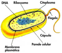 Células muito simples, sem organelas e com material genético (DNA) localizado em uma região específica do citoplasma, mas não protegido por um envoltório, ou seja, sem uma membrana nuclear (carioteca).