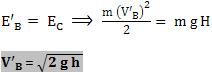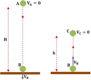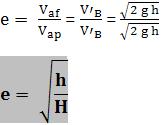 Vamos calcular o coeficiente de restituição nesta colisão, em função de h e H.