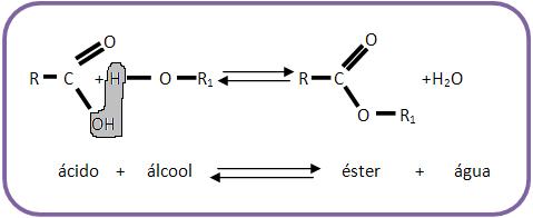 A reação de esterificação é considerada uma reação reversível de álcool junto com um ácido orgânico ou inorgânico, produzindo éster e água. Já quando areação é inversa, ela é denominada hidrólise do éster.
