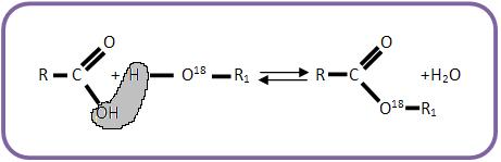 Com ácido, observa-se a forma do éster marcado, e não água, contendo assim O – 18.