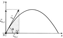 A velocidade Vo pode ser decomposta em duas componentes: Vox (componente da velocidade no eixo dos x) e Voy (componente da velocidade no eixo dos y):