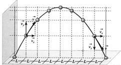 a) Movimento horizontal – Nesse movimento, o corpo percorre espaços iguais (designados por L, na figura) em tempos iguais: movimento uniforme (velocidade constante).