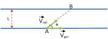 No exemplo acima, podemos considerar um barquinho em um rio, e dizer que a velocidade desse barquinho é Vrel, em relação às águas de um rio, que apresenta uma largura L. O ângulo ѳ, é o ângulo que fica entre Vrel , e a velocidade de arrastamento das águas.