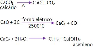 Obtem-se o acetileno (etino) na indústria, através das matérias- primas encontradas em na natureza, como por exemplo: calcário, carvão e água.