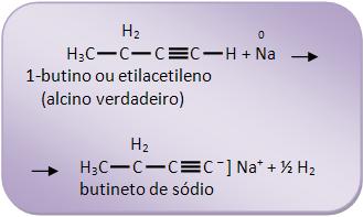 O propino é considerado alcino verdadeiro, pois reage com sódio: