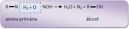 Amina primária + ácido nitroso (HNO2) Por Redação01/06/2012 às 10:25 18 – Amina primária + ácido nitroso (HNO2) As aminas primárias alifáticas irá reagir com HNO2, formando álcoois (não necessariamente primários).
