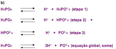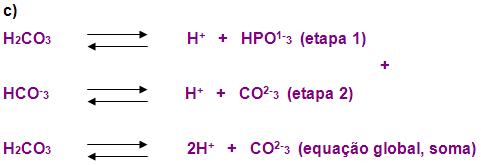 Os exemplos exemplificados que foram observados anteriormente, cada ácido desses possuem apenas um hidrogênio ionizável. A ionização por etapas é para os que possuem mais de um átomo de hidrogênio ionizável. Observe agora os que possuem maior importância, e as respectivas equações simplificadas.