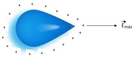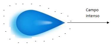 Por possuir uma densidade muito grande de cargas elétricas, nas pontas do condutor, seu campo elétrico que fica em sua vizinhança fica muito mais elevado.
