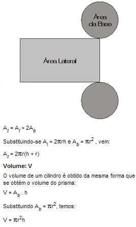 A superfície lateral de um cilindro circular reto, de altura h, e cujos círculos das bases têm raio r, planificada, é um retângulo de dimensões 2r (comprimento da circunferência da base) e h (altura do cilindro).