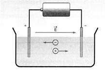 Nas soluções eletrolíticas, as partículas portadoras de carga são os íons, que se movimentam sob a ação da força do campo elétrico. Os íons positivos movimentam-se no mesmo sentido do campo elétrico ; enquanto os negativos movimentam-se no sentido oposto.