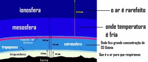 Estratosfera: fica localizada acima da troposfera e pode atingir até 50 quilômetros além do nível do mar. Temperaturas variam entre -5 °C a -60 °C. Nessa camada, estão abrigadas as camadas de ozônio. São elas que fazem a proteção contra as radiações ultravioletas.