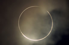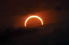O eclipse anular/ anelar/ anel: quando o Sol é coberto pela Lua, ao seu redor ainda permanecem focos de luminosidade.