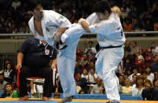 Depois de sair de Okinawa em 1900, o karatê chegou até as ilhas havaianas e conquistou o solo estadunidense. Transformou-se em uma modalidade esportiva que ganhou interessados em todo o mundo. Por volta da década de 30, passou a ser reconhecida como arte marcial pela Associação Japonesa de Artes Marciais. Algumas regulações foram planejadas para uniformizar a prática. Daí surgiram também as modalidades do judô, Jigoro Kano. O uso do quimono branco e da cor de faixas que mostram o estágio do participante também foram definidas.