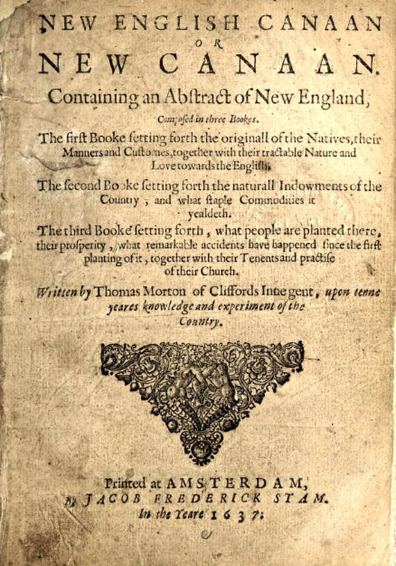Morton afirmava que os nativos americanos tinham uma cultura mais “civilizada e humanitária” que a dos vizinhos europeus, exaltando uma formal liberal do cristianismo que supostamente envolvia relações sexuais imorais com mulheres nativas, orgias com bebida em homenagem a Baco e Afrodite e a exaltação em meio a uma colônia que surgia como uma das mais prósperas na Nova Inglaterra: Merrymount.