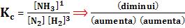 Ao aumentar a temperatura ocorre o deslocamento do equilíbrio no sentido de formação dos reagentes (endotérmica). Portanto, ocorre o aumento da concentração de N2 e H2 e a diminuição da concentração do NH3. Diminui o valor de Kc.