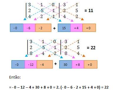 Se multiplicarmos os elementos da terceira linha por 2 temos: