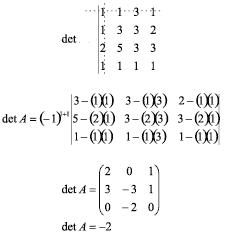 4.º Multiplicar o determinante obtido no 3.º item por (-1)i+j onde i e j designam as ordens da linha e da coluna às quais pertence o elemento aij = 1.