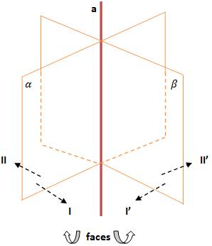 A reta a representa a aresta do diedro determinado pelo corte dos semiplanos I e I’.