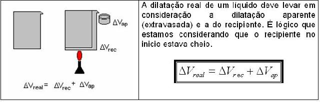 Existe um fator importante a ser analisado. Como o líquido estará num recipiente, ao se dilatar deveremos levar em conta a dilatação do recipiente.