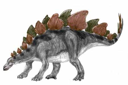 O Estegossauro ("lagarto telhado") mesmo com este ar feroz era um pacato herbívoro, viveu cerca de 200 milhões de anos atrás, recebeu esse nome, pois suas placas ósseas protetoras eram colocadas como telhas em um telhado.