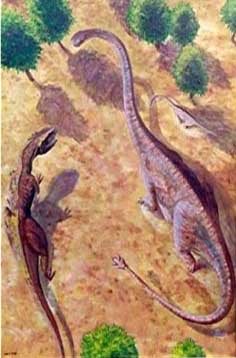 Na imagem acima um Shunossauro protege seu filhote de um Yangchuanossauro.