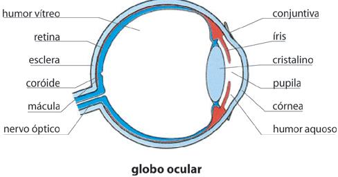 2) Uma túnica intermédia vascular pigmentada, compreendendo a coróide (onde localiza-se os vasos sanguíneos que nutrem e oxigenam as células do olho), o corpo ciliar e a íris (disco colorido do olho – no centro da íris há um orifício de tamanho regulável – a pupila – que ajusta seu tamanho de modo a regular a quantidade de luz que entra no olho).