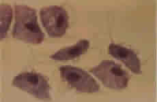 Sendo um ser que se alimenta através de outros organismos, o tricomonas mede cerca de quinze micrómetros. Possui flagelos que servem para dar-lhe mobilidade e para respirar, não utiliza oxigênio para respira, mas ás hidrogênio não pode mudar de forma, somente se reproduz através de divisões.