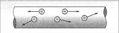 Consideremos o fio metálico da figura. Sendo um elemento condutor, esse fio apresenta uma grande quantidade de elétrons livres, que se movimentam de maneira desordenada no seu interior.