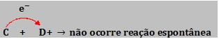 Quando, por exemplo, um metal C não deslocar um metal D, dizemos que C não pode ceder elétrons para o cátion D.