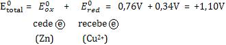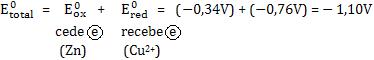 • Quando a voltagem calculada para a reação (Etotal ou ∆V) for de valor positivo, a reação será espontânea.