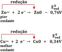 Como oxidante o cátion Cu++ é melhor do que o cátion Zn++, pois o potencial de redução do cobre é maior que o do zinco.