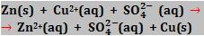 Seja uma reação que ocorre quando submergimos uma barra de zinco numa solução contida de íons Cu+2, obtida através da dissolução de sulfato de cobre em água.