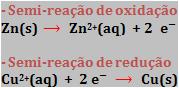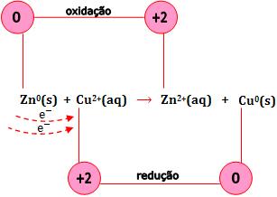 A reação é formada a partir de uma conversão de elétrons do átomo de zinco para o íon Cu2+.