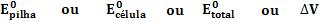 Voltagem da célula padrão ocorre quando todas as concentrações são 1 mol/L, todas as pressões parciais dos gases são 1 atm e a temperatura é 25°C.