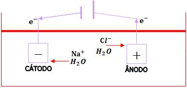 Eletrólise de solução aquosa de NaCl com eletrodos inertes (platina) Por Redação01/06/2012 às 10:27 12. Eletrólise de solução aquosa de NaCl, com eletrodos inertes (platina). O Na+ e o OH– permanecem na cuba (processo de obtenção de NaOH).