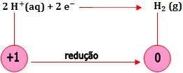 – Redução de íons H+