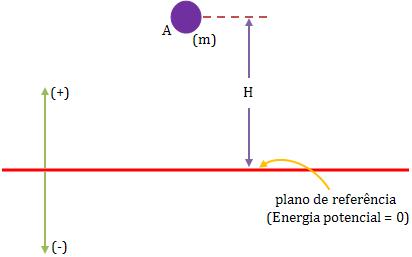 Seja um ponto material de massa m, localizado num ponto A, numa altura H, acima do plano de referência. Considere g como o módulo da aceleração da gravidade.