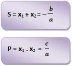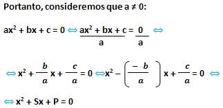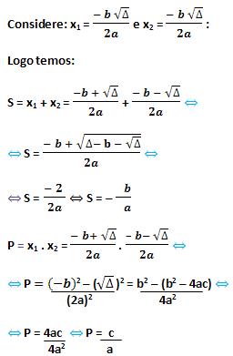 a) Considere x1 e x2 como as raízes reais da equação ax2 + bx + c = 0, com a ≠ 0; ou ainda, S e P a soma e o produto dessas raízes: