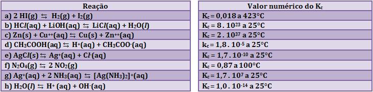O valor numérico da constante de equilíbrio de uma reação é uma expressão da tendência de os reagentes se transformarem em produtos.