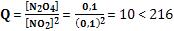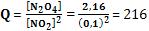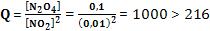 Conclusão: O sistema não atingiu o equilíbrio, pois Q < Kc. O quociente Q deve ficar maior, isto significa que, NO2 será consumido e outros N2O4 serão formados.