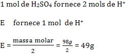 O equivalente-grama de um ácido é definido como a massa que possui ou pode fornecer 1 mol de H+ (6,02 x 1023 íons de H+).