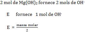 O equivalente-grama de uma base é definido como a massa que possui ou pode fornecer 1 mol de OH– (6,02 x 1023 íons OH–).