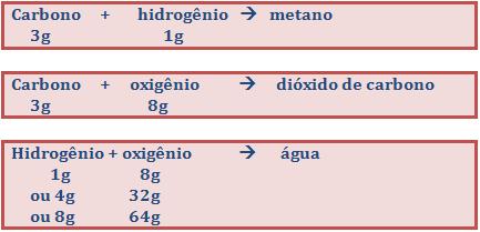 As massas 1g de hidrogênio e 8g de oxigênio apresentam o mesmo poder de combinação, ou seja, ambas combinam com 3g de carbono. Portanto, dizemos que são massas equivalentes.