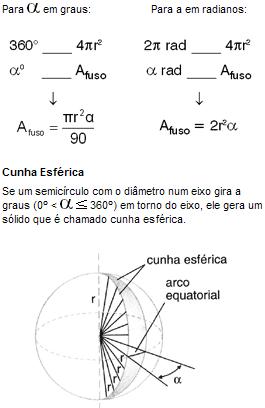 Note que, quanto maior for o ângulo, maior será o fuso correspondente; a área do fuso é diretamente proporcional a