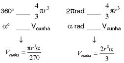 Note que quanto maior for o ângulo, maior será o volume da cunha correspondente; o volume da cunha é diretamente proporcional a