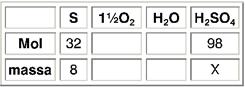 Qual a massa de ácido sulfúrico produzido a partir de 8 toneladas de enxofre?Dados: S = 32 e H2SO4 = 98