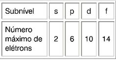 As camadas ou níveis de energia são formados de subcamadas ou subníveis de energia, designados pelas letras s, p, d, f.