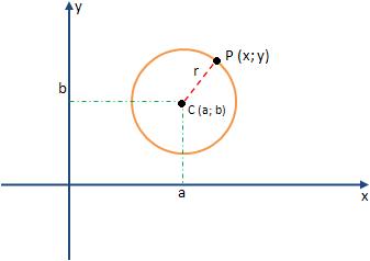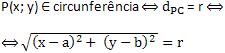 Considere a circunferência de centro C(a; b) e raio r e seja P(x; y) um ponto do plano.