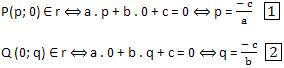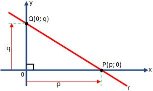 Considere a reta r, de equação geral ax + by + c = 0, não paralela a nenhum dos eixos coordenados e que não passa pela origem, ou seja, a ≠ 0, b ≠ 0 e c ≠ 0. Assim a reta r terá interceptos em